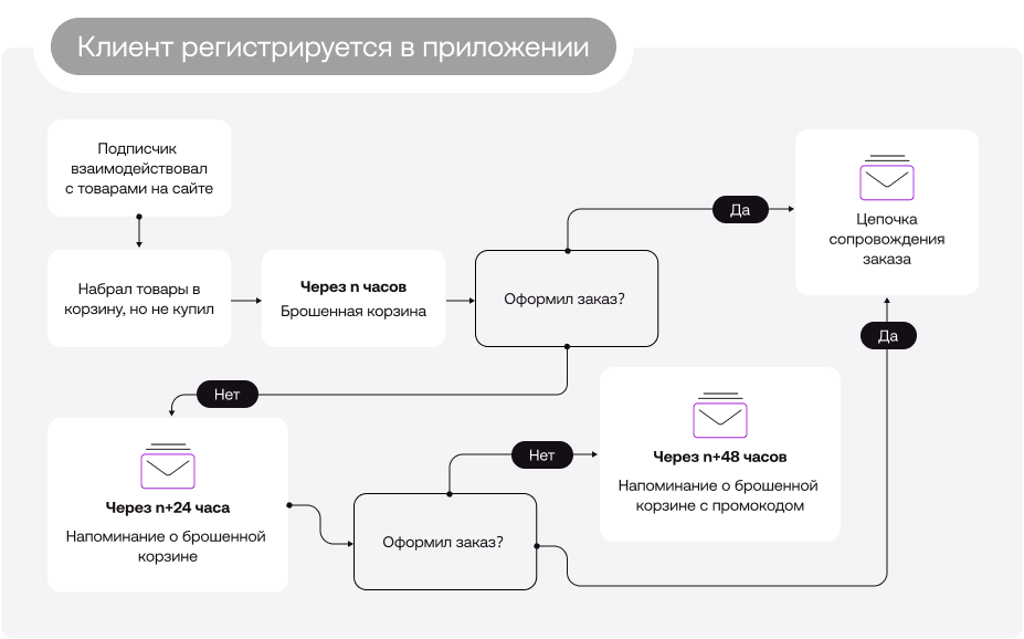 Рассылки могут быть настроены на разные события — регистрацию, написание отзыва. Этот инструмент поддерживает интерес к товару, стимулирует покупки.