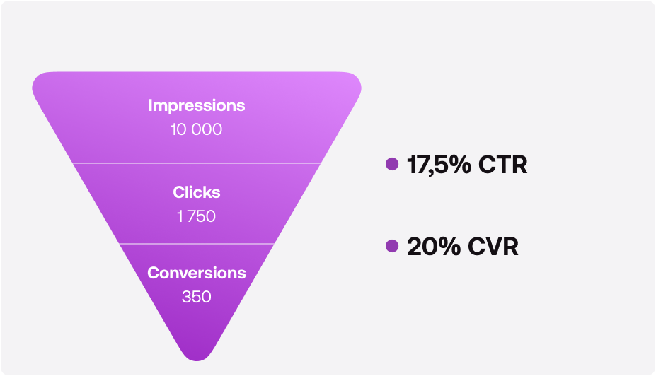Чем выше данный показатель, тем большему количеству людей интересна ваша реклама и тем выше вероятность, что они перейдут дальше по воронке и совершат покупку.
